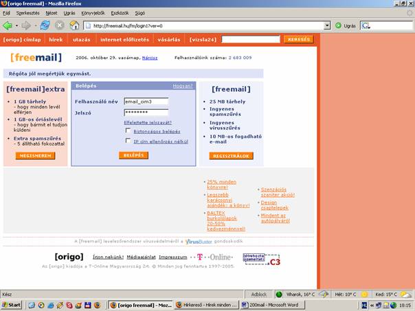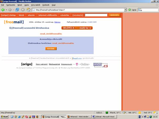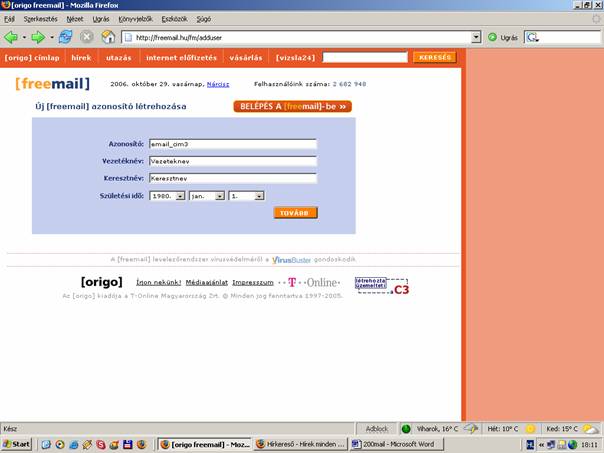 - Először is hozzunk létre egy E-mail fiókot. ( A példában a Freemail-t mutatom be) Ha kezdhetjük kattints az alábbi linkre: