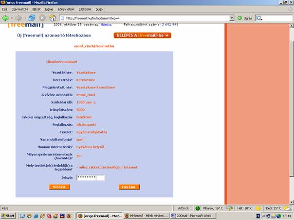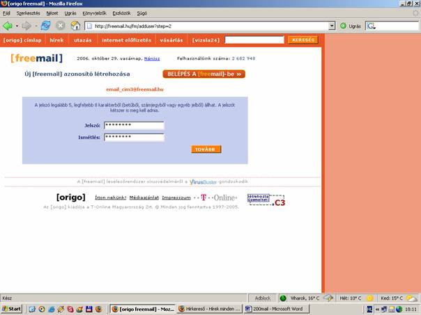 - E-mail cím létrehozása, ha már van E-mail címed akkor ezt ki is hagyhatod, vagy csinálhatsz egy másikak külön ennek az