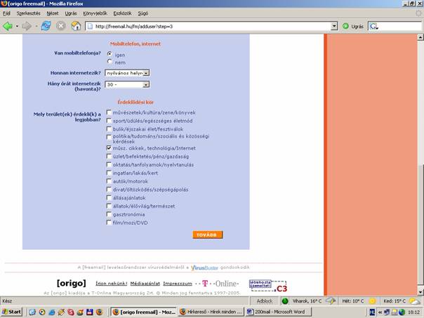 - Ezután a "szokásos" Tovább gombbal jutunk el a következő oldalra.