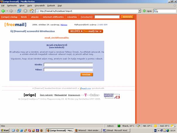 - Ha félsz, hogy elfelejted a jelszavad, akkor megadhatsz egy kérdést, és egy választ amivel a rendszer azonosítani tud, ha elfelejtetted volna a jelszavad.