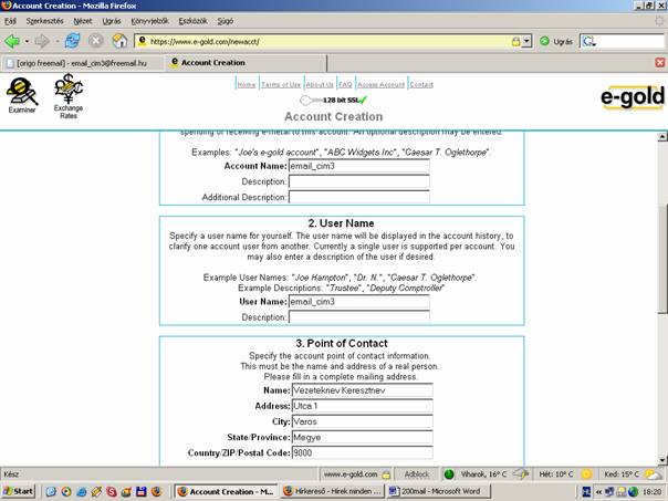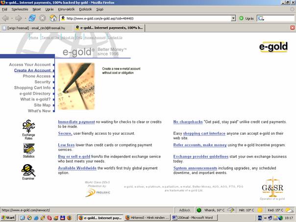 ( A példában az E-gold számla létrehozását mutatom be. De a Money Bookers-t is hasonlóan kell létrehozni.)