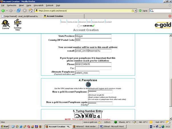 number"). Ezután már csak annyi a dolgunk, hogy a www.e-gold.com oldalon